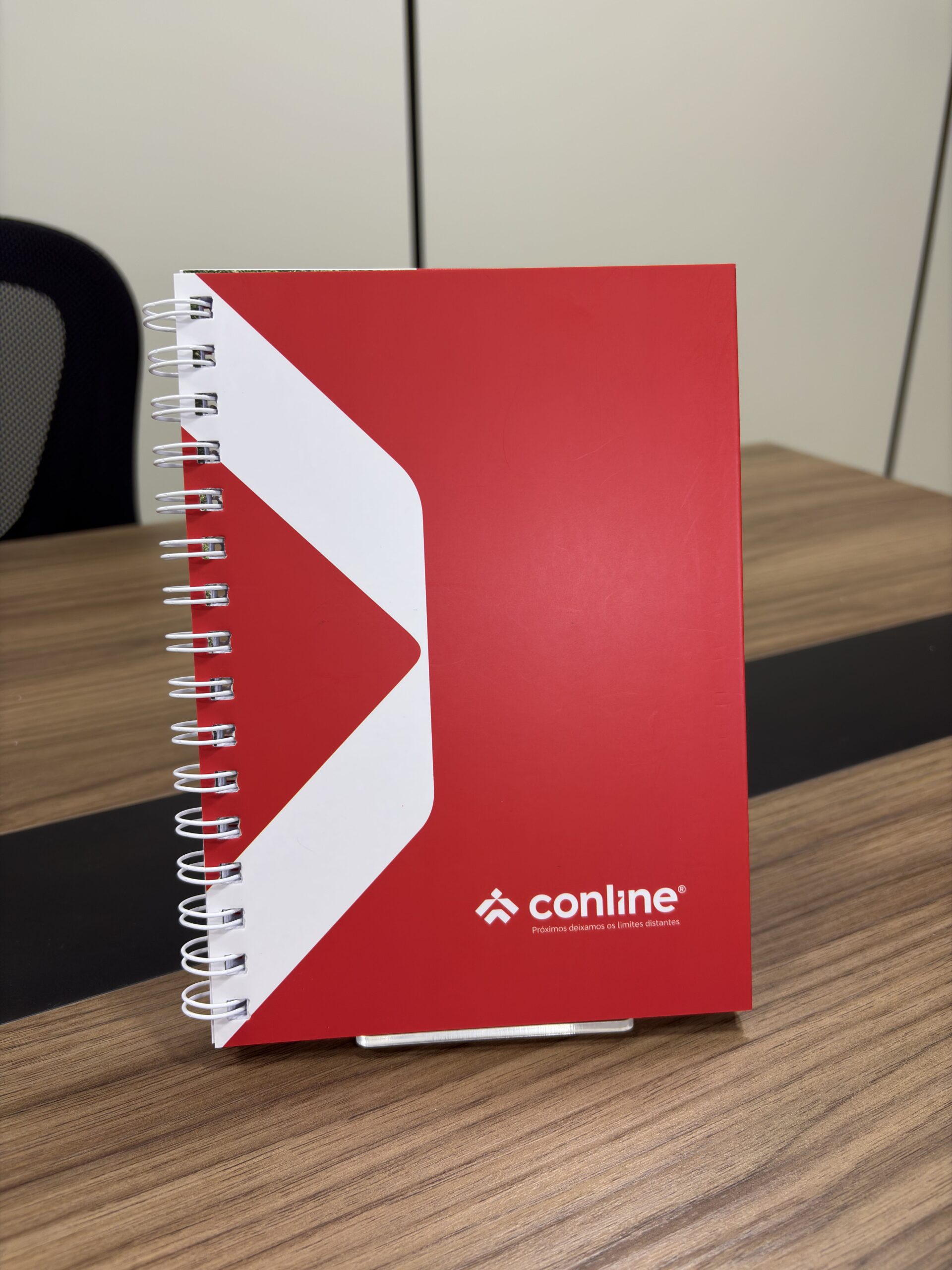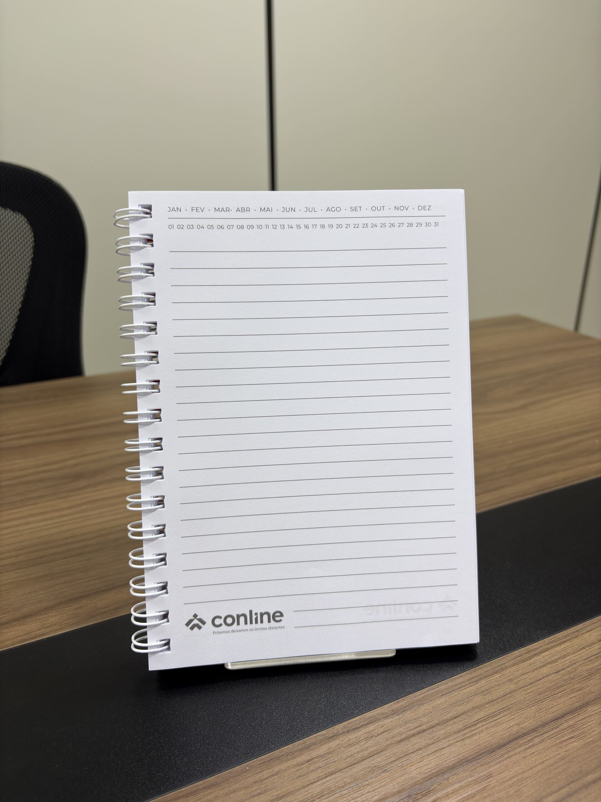 Cadernos e agendas personalizados são brindes corporativos de alto valor percebido; úteis no dia a dia, ficam na mesa do cliente e reforçam a marca da empresa a cada uso.